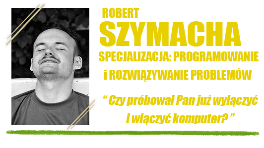 Programista PHP+MySql, C/C++, JavaScript, AS3.0, który zajmuje się back-endem każdego projektu i setkami innych rzeczy, których pozostali członkowie zespołu nie potrafią. W firmie piastuje stanowisko Chief Programmer/ Chief Problem Solver xD!